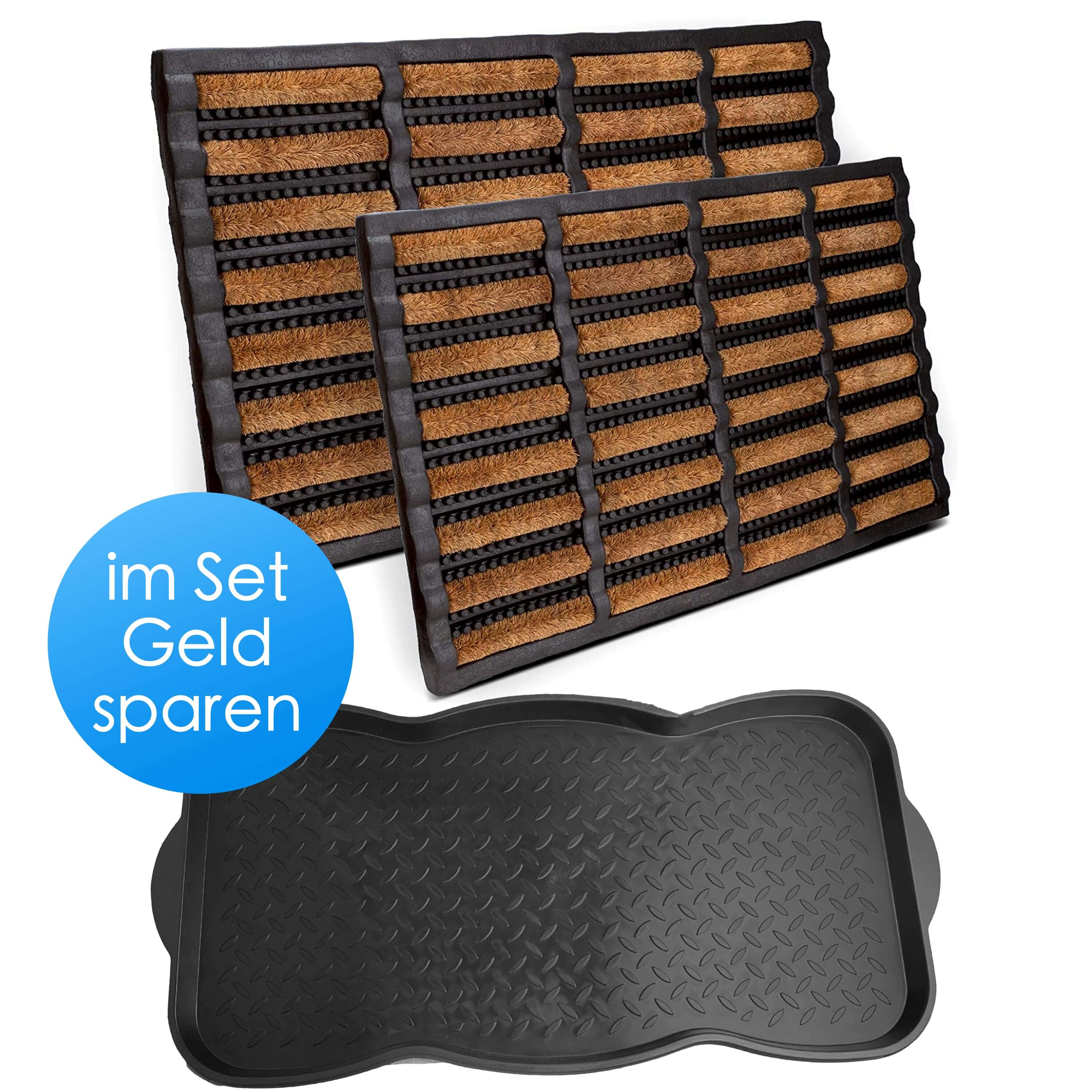 ✓ 3-teiliges Bundle Set bestehend aus zwei Kokos Fussmatten in der Größe Ihrer Wahl und eine XXL Schuhabtropschale. Robust und langlebig. Die Schuhwanne aus hochwertigen Kunststoff.