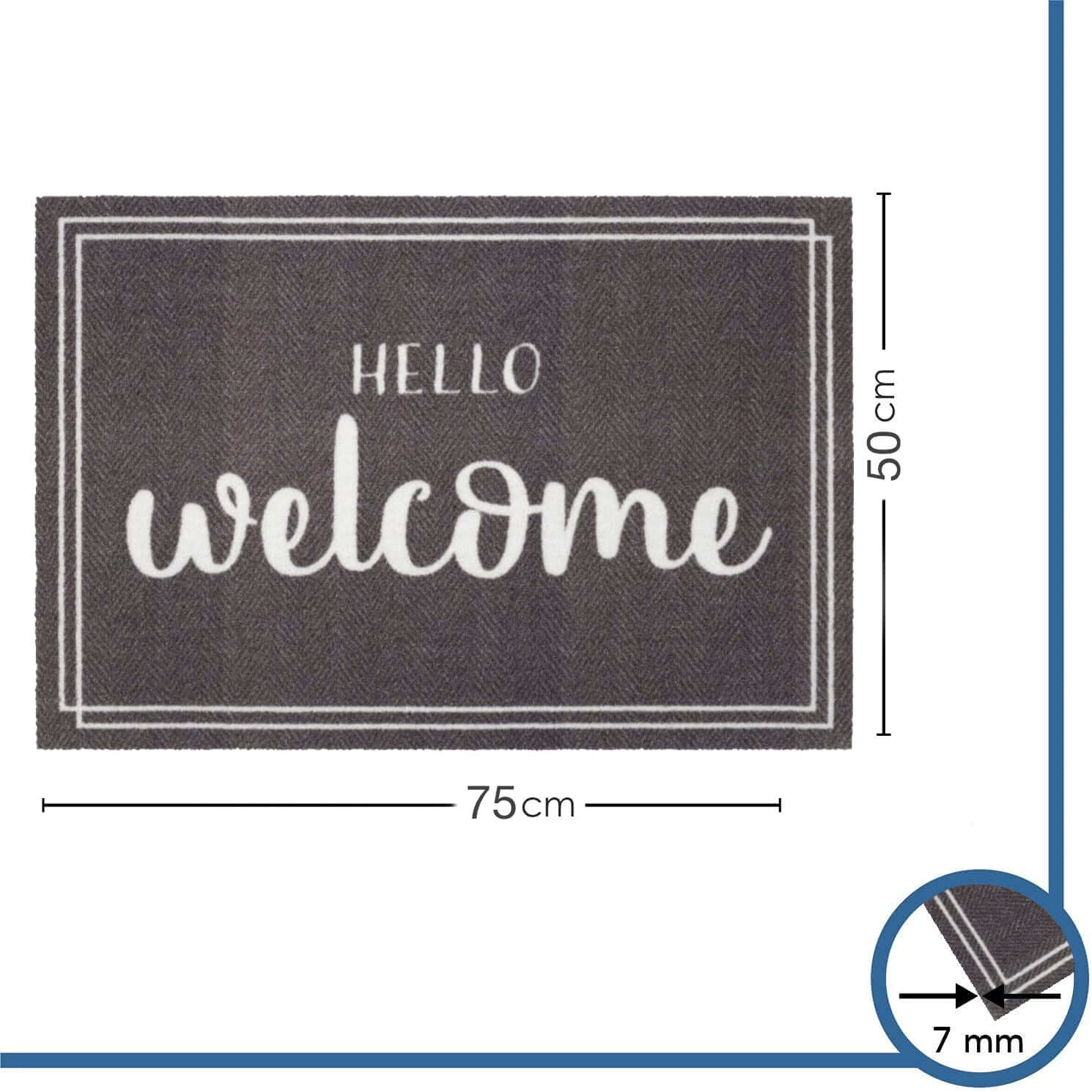 Die Fußmatte mit dem Motiv "Hello Welcome" von Entrando ist ein Blickfang und echter Allrounder. Der verspielte Schriftzug und die zeitlose Farbkombinationen machen sie zu einem tollen Blickfang im jedem Eingangsbereich. Dank ihrer rutschfesten Rückenbeschichtung bleibt sie auch auf rutschigen Böden an ihrem Platz. Und wenn nötig, können Sie ihn bei 30° in der Waschmaschine reinigen.