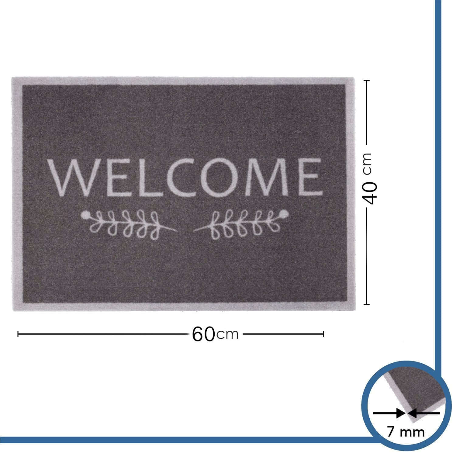 Die Entrando Fussmatte ist die ideale Wahl für alle, die nach einer hochwertigen, langlebigen und attraktiven Fußmatte suchen. Die Matte ist aus Polyamid gefertigt und überzeugt durch ihre hohe Qualität. Der weisse "Welcome" Aufdruck ist in einer schönen, modernen Schriftart gestaltet und setzt einen starken Akzent in Ihrem Eingangsbereich. Die Fußmatte ist in der Farbe Anthrazit gehalten und passt somit vor jeder Haustür. Die Matte ist auch mit einem Motiv mit Blättern versehen, was sie besonders ansprechend macht.