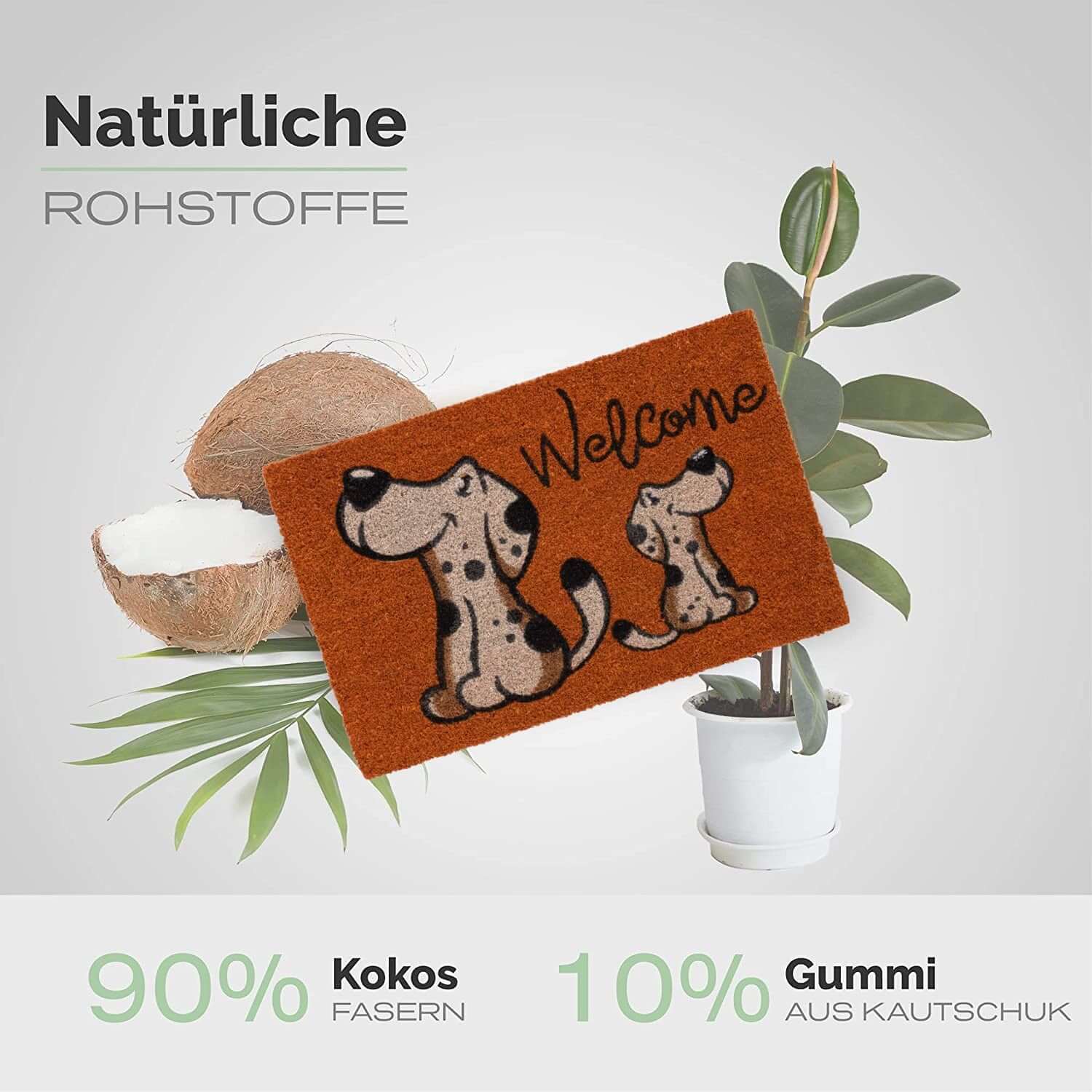 Fußmatte aus Kokos mit einem Motiv aus Hunde und einer "Welcome" Aufschrift - ideal für den Eingang
