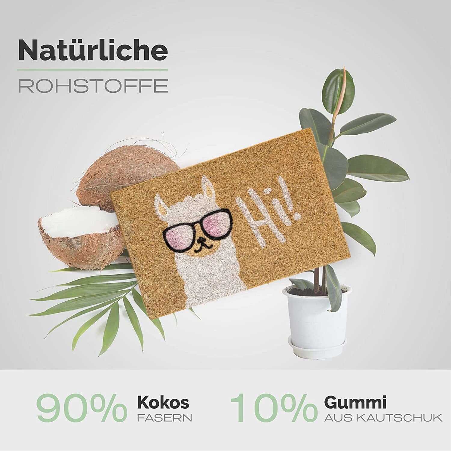 Fußmatte aus Kokos mit einem Lama mit Sonnenbrille und der Aufschrift Hi! - ideal für den Eingang