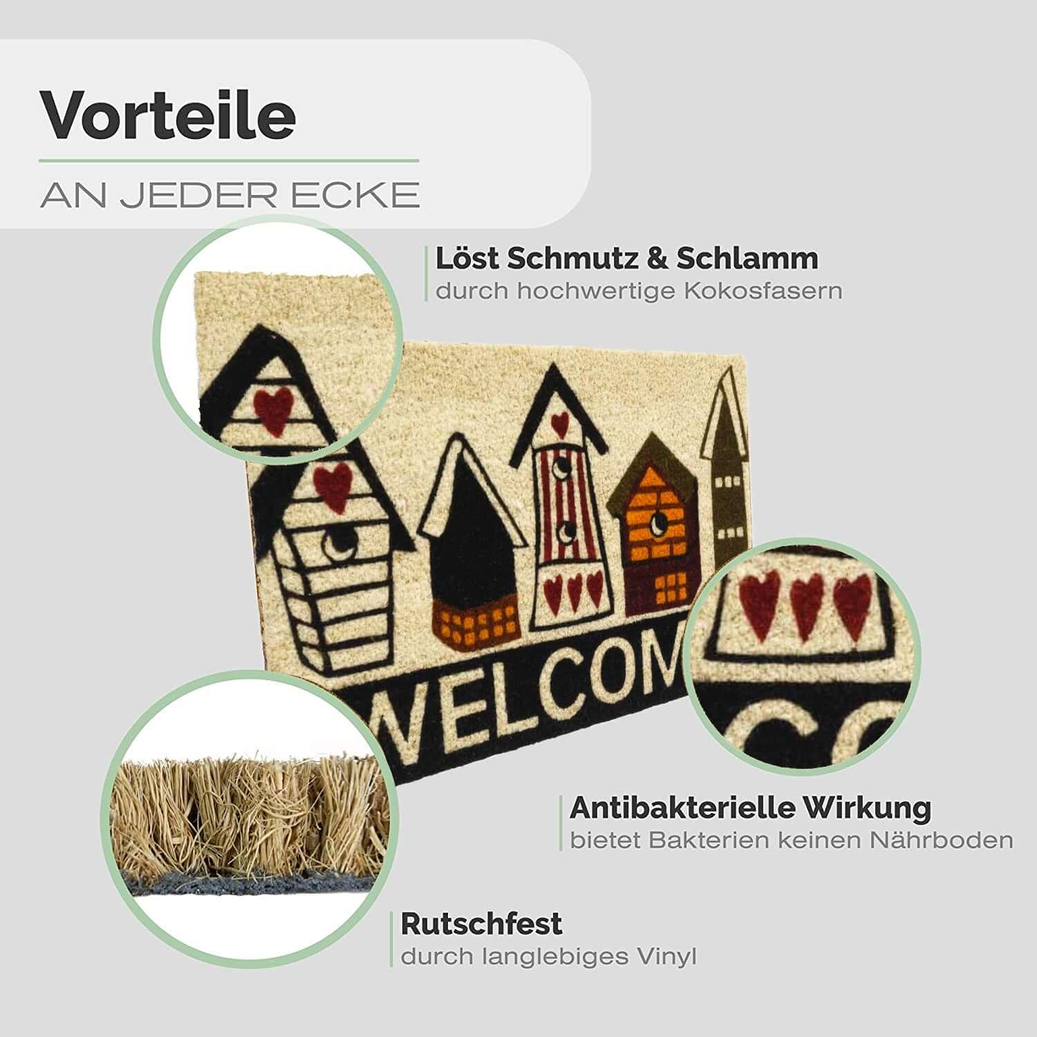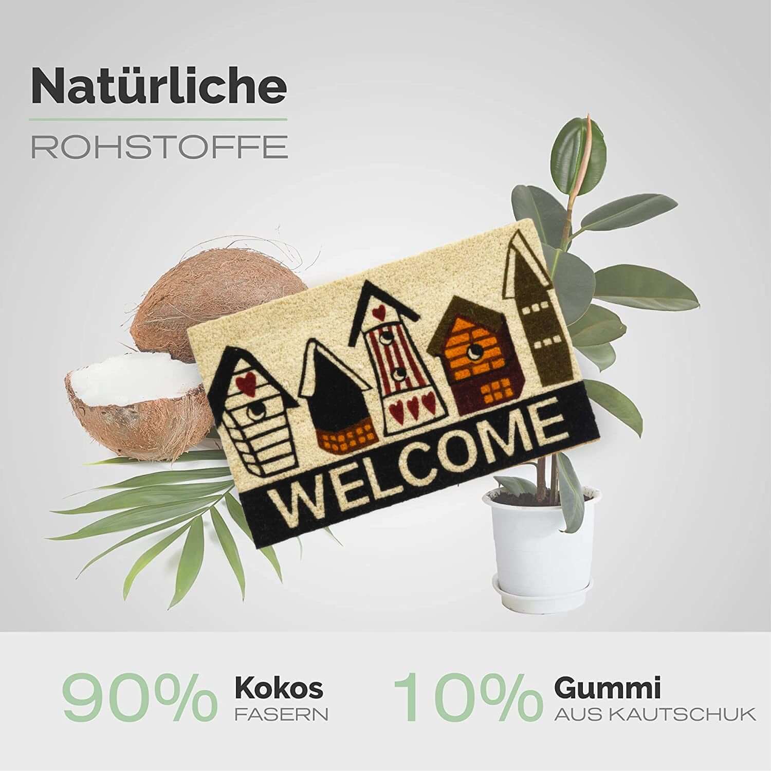 Willkommen in Ihrem neuen Zuhause! Diese Fußmatte aus Kokos mit dem süßen Vogelhäuser-Motiv und der Aufschrift Welcome ist die perfekte Begrüßung für Ihre Gäste. Aus natürlichen Kokosfasern gefertigt, ist die Fußmatte besonders robust und wetterfest - ideal für den Eingangsbereich. Eine tolle Geschenkidee für Freunde und Familie!