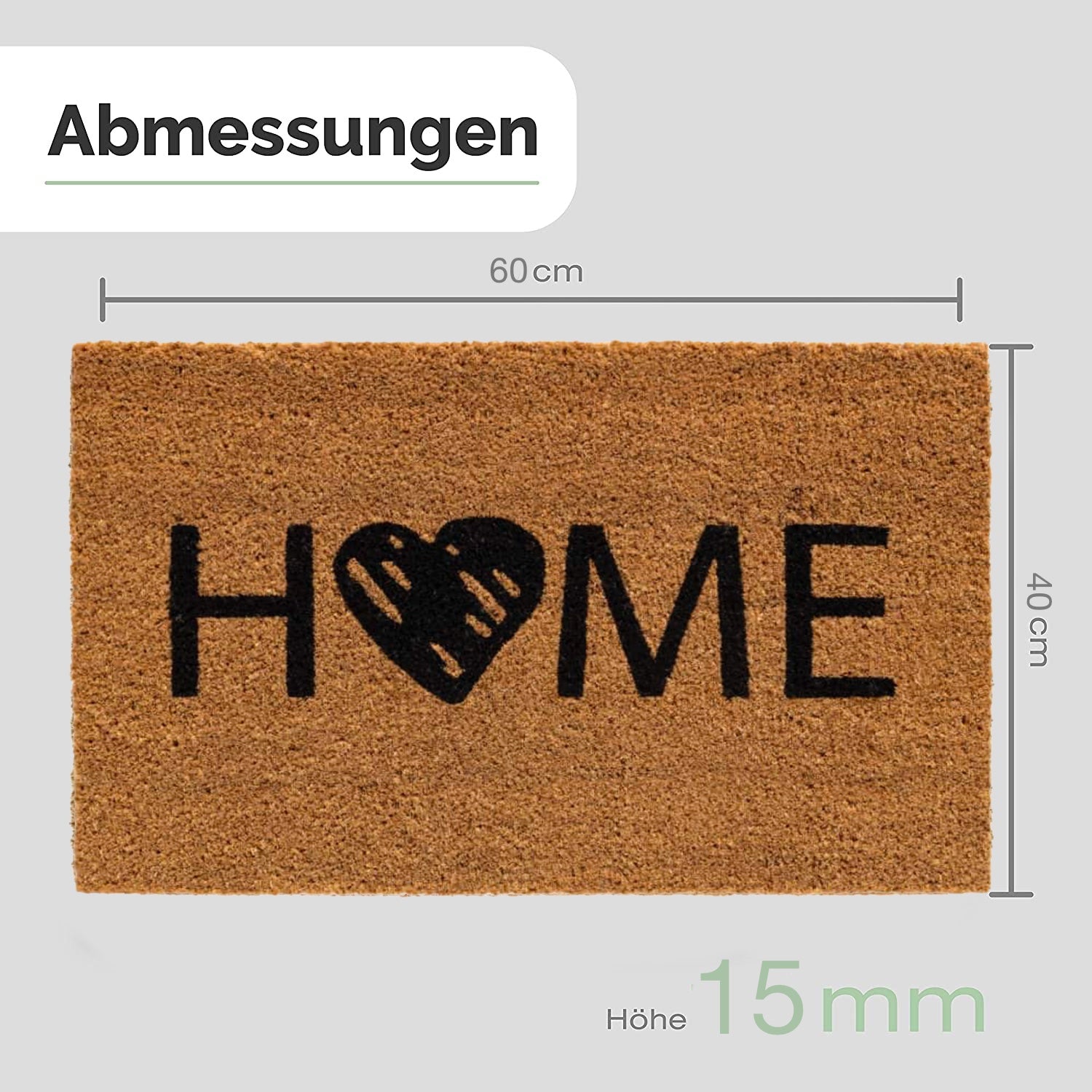 Mit dieser einzigartigen Kokos-Fußmatte mit Herz-Motiv und herzlichem HOME-Schriftzug, empfangen Sie Ihre Gäste schon an der Tür mit Gemütlichkeit und Wärme. Das verspielte Herz-Design ersetzt das O in HOME und verleiht Ihrer Fußmatte einen charmanten Touch.