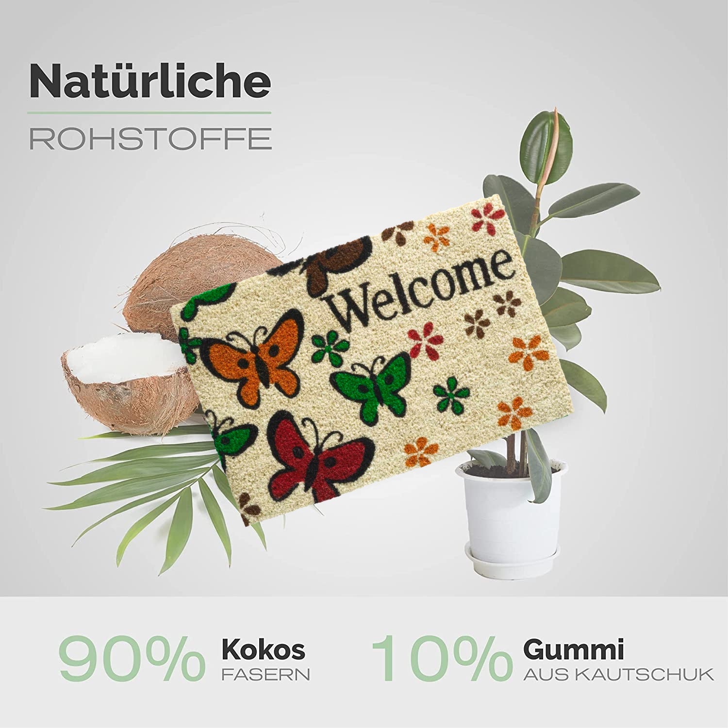 Fußmatte aus Kokos mit bunten Schmetterlinge und Welcome Aufdruck - ideal für den Eingang