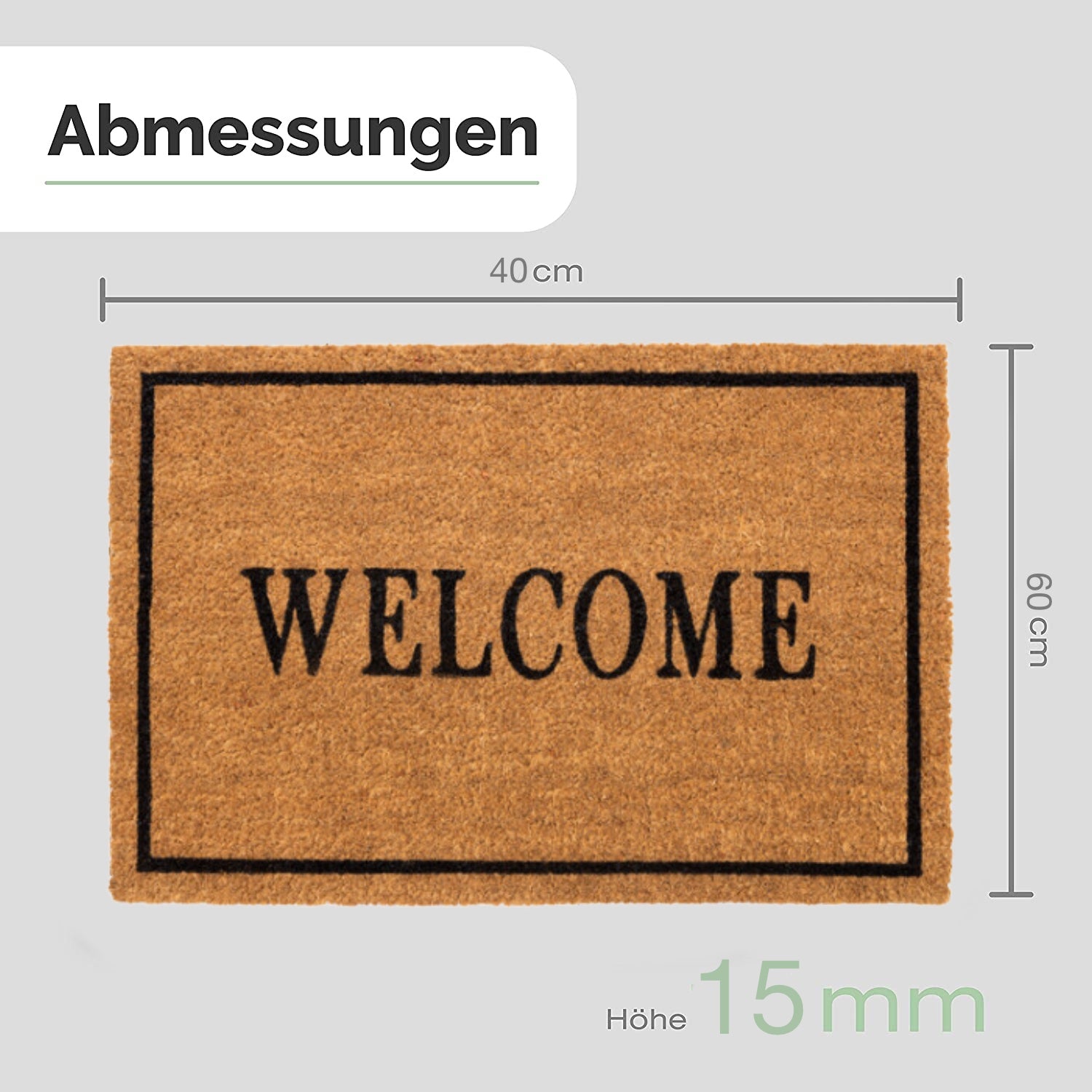 Gestalten Sie Ihren Eingangsbereich einladend und ausdrucksstark mit unserer exklusiven Fußmatte, die durch einen schlichten Rahmen und den herzlichen "Welcome"-Schriftzug besticht. Diese matte bringt nicht nur einen Hauch von Natürlichkeit in Ihr Zuhause, sondern unterstreicht auch Ihre Gastfreundschaft mit Stil.