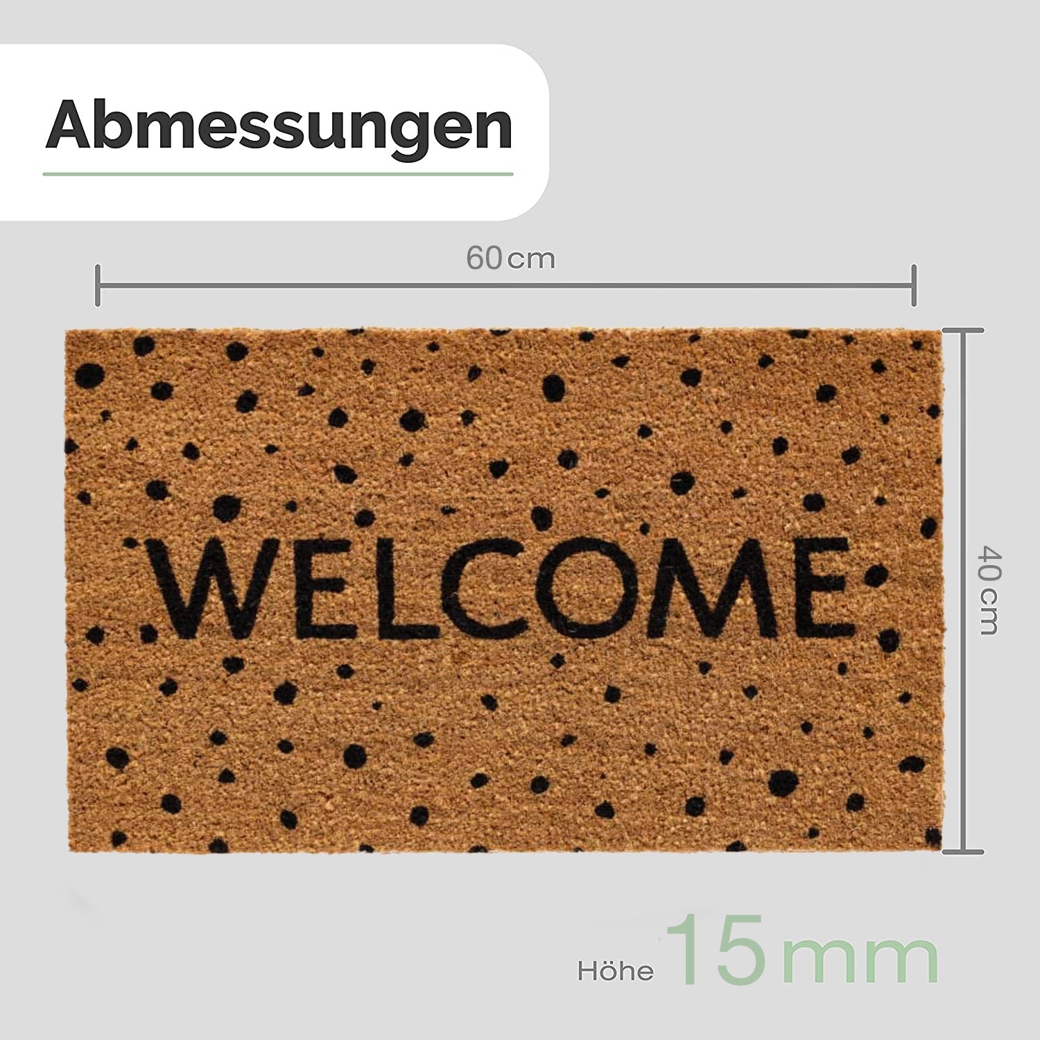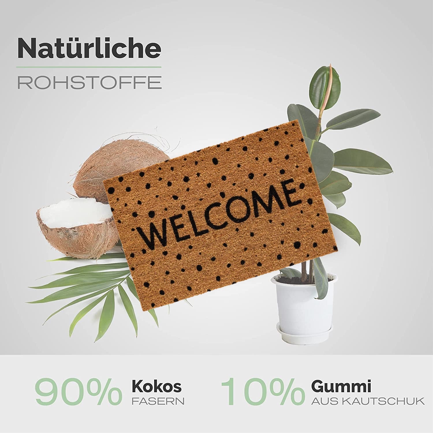 Natürliche Fussmatte aus Kokos mit schlichten Punkten und einen herzlichen "Welcome"-Schriftzug - ideal für den Eingang