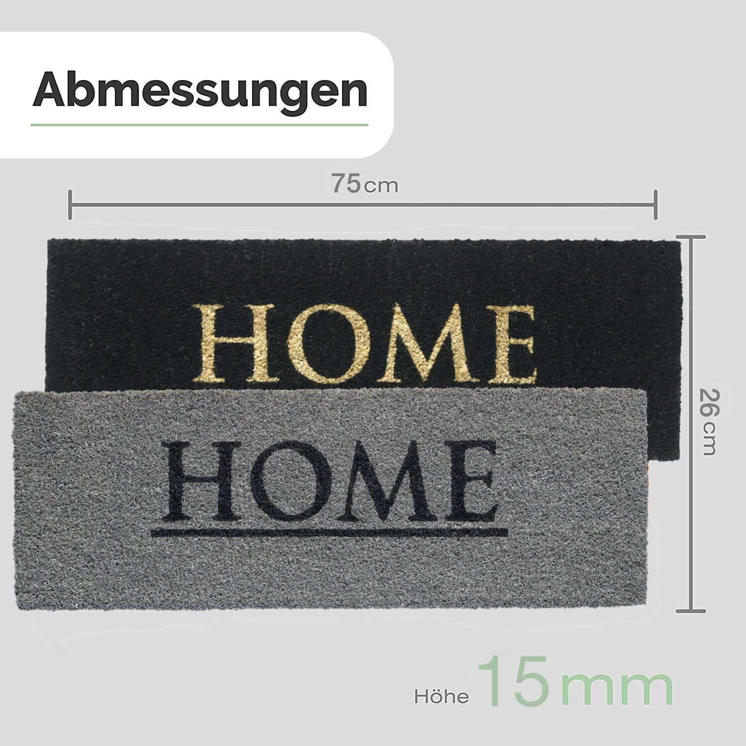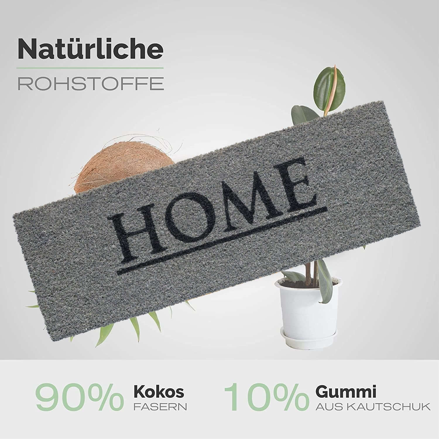 Schmale Fussmatte aus Kokos mit einem Home Aufdruck in der Farbe Schwarz oder Grau - ideal für den Eingang