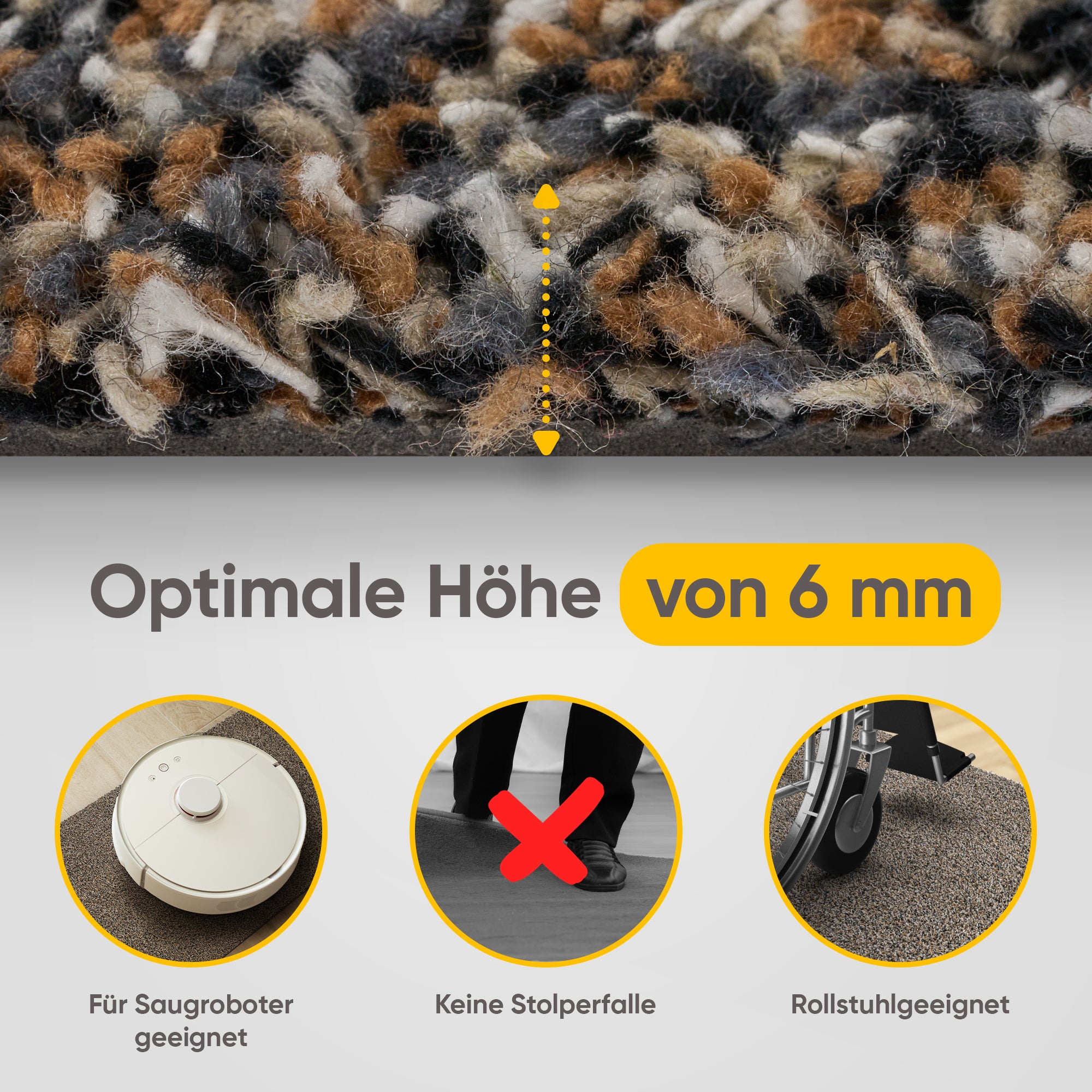 Diese rechteckige Matte mit abgerundeten Ecken fügt sich nahtlos in jede Raumgestaltung ein, ideal für private Wohnräume sowie für Büros und Geschäftsbereiche. Ihre flauschige Textur und die natürliche Farbgebung ergänzen jeden Einrichtungsstil und sorgen gleichzeitig für eine effektive Schmutz- und Feuchtigkeitskontrolle.