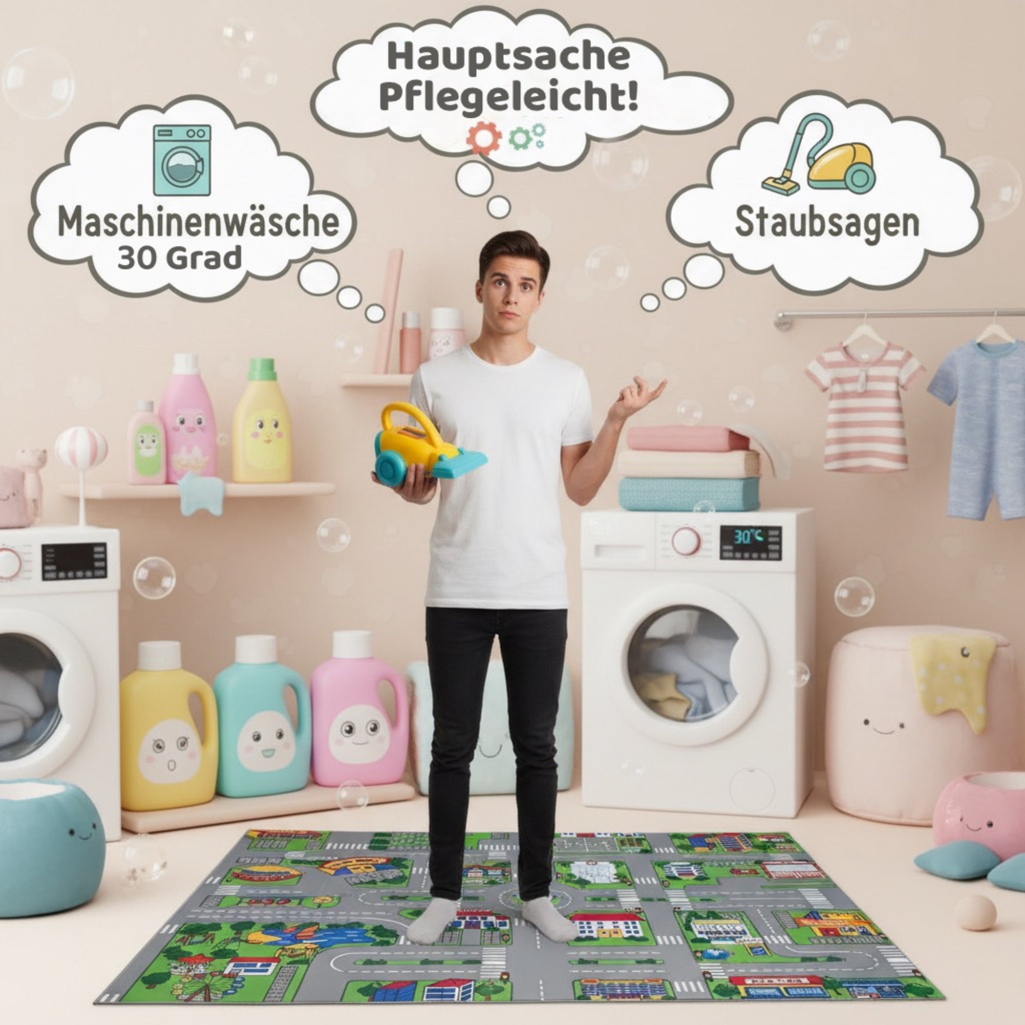 Unsere Spielteppiche sind pflegeleicht und können bei 30 Grad in der Maschine gewaschen werden. Es ist jedoch wichtig, die Pflegehinweise des Herstellers zu beachten, um die Langlebigkeit des Teppichs zu gewährleisten. Regelmäßiges Absaugen hilft, Staub und Schmutz zu entfernen und die Hygiene im Kinderzimmer aufrechtzuerhalten.