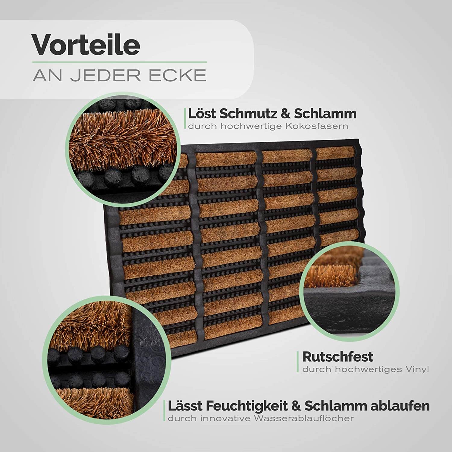 ✓ Rutschfeste Kokosfasermatte - mehr Sicherheit durch Vinylrücken
